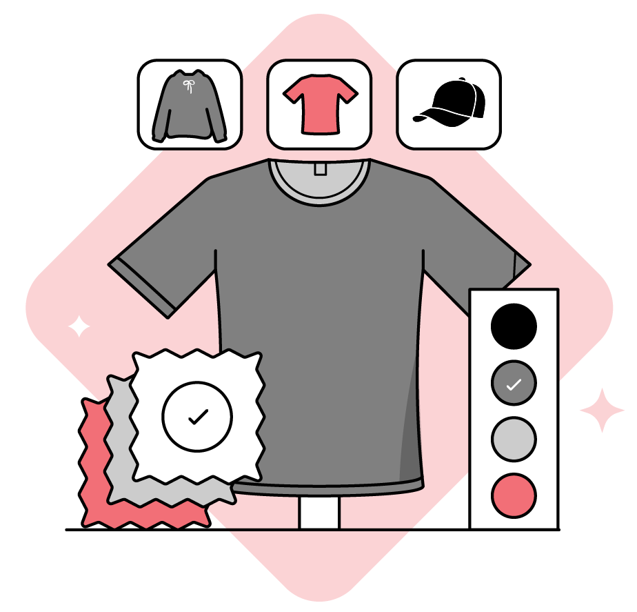 Jetzt Wunschtextil auswählen, Logo hochladen und in wenigen Schritten dein unverbindliches Angebot mit Mockup erhalten.